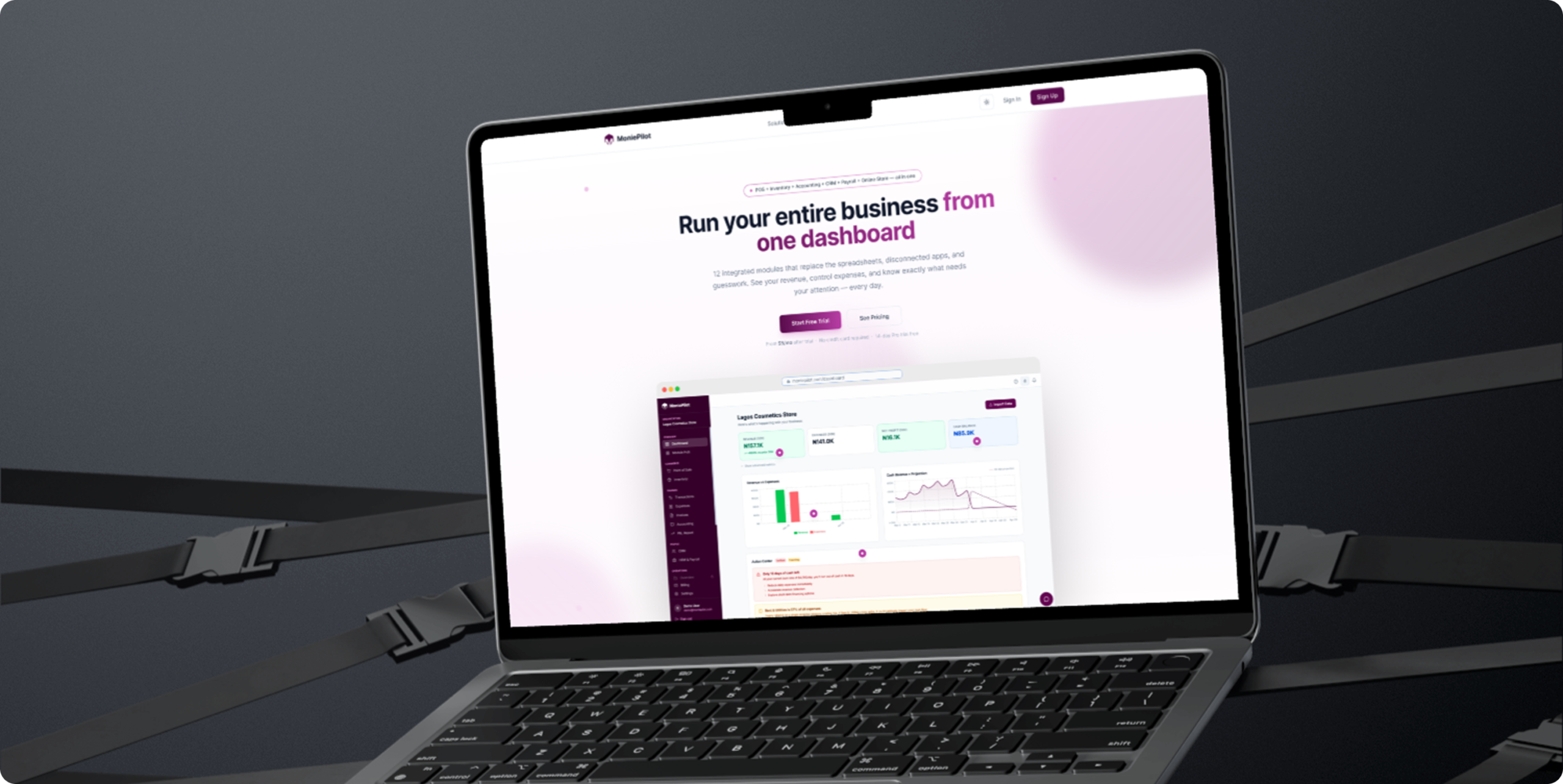 MoniePilot is a business management platform built for small and medium businesses across Africa. They needed a digital presence that clearly communicated the power of their all-in-one solution replacing the chaos of disconnected spreadsheets, fragmented apps, and guesswork with a single, intelligent dashboard. The goal was to make the platform feel approachable yet powerful, speaking directly to business owners who needed clarity, not complexity.