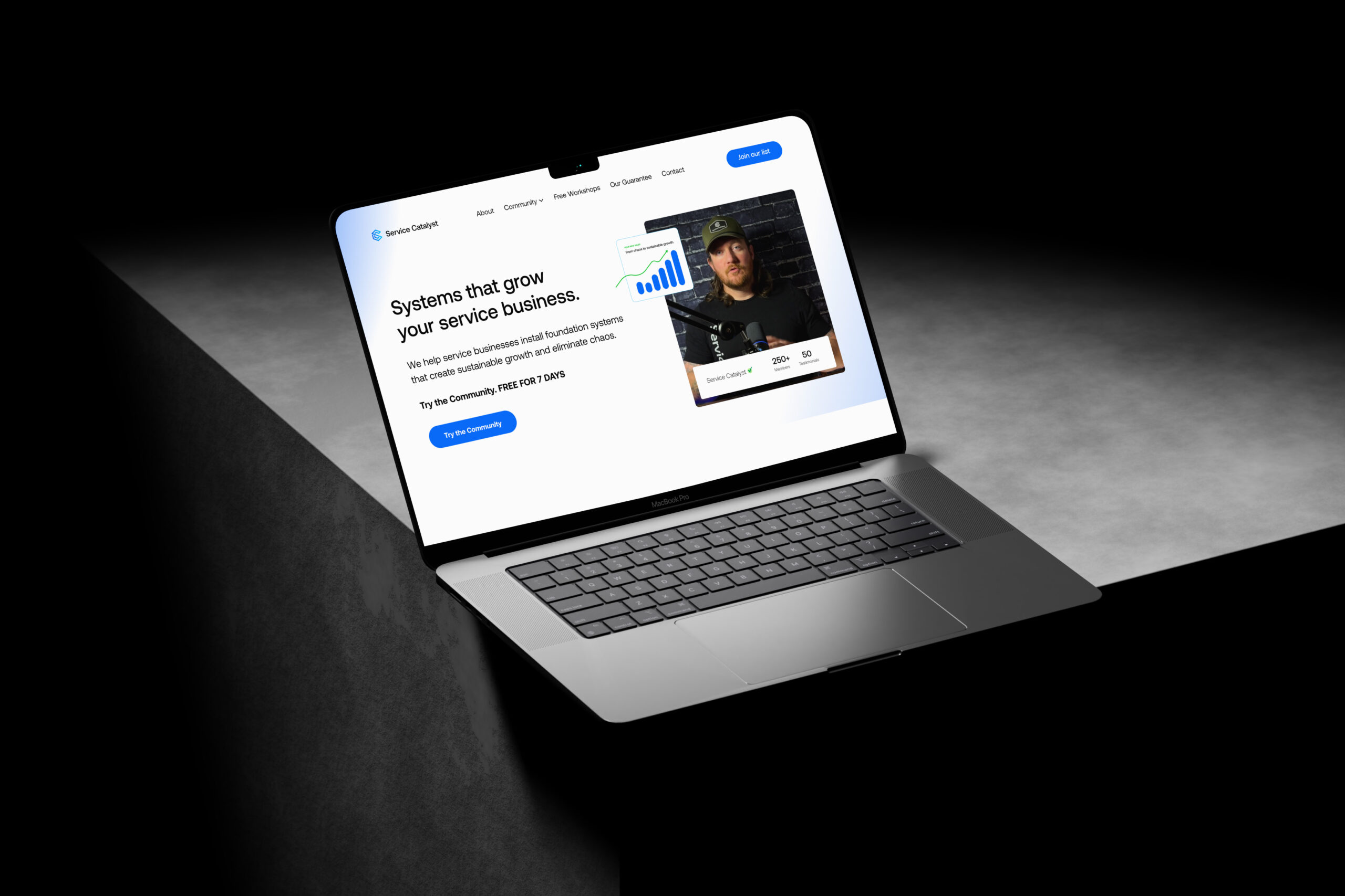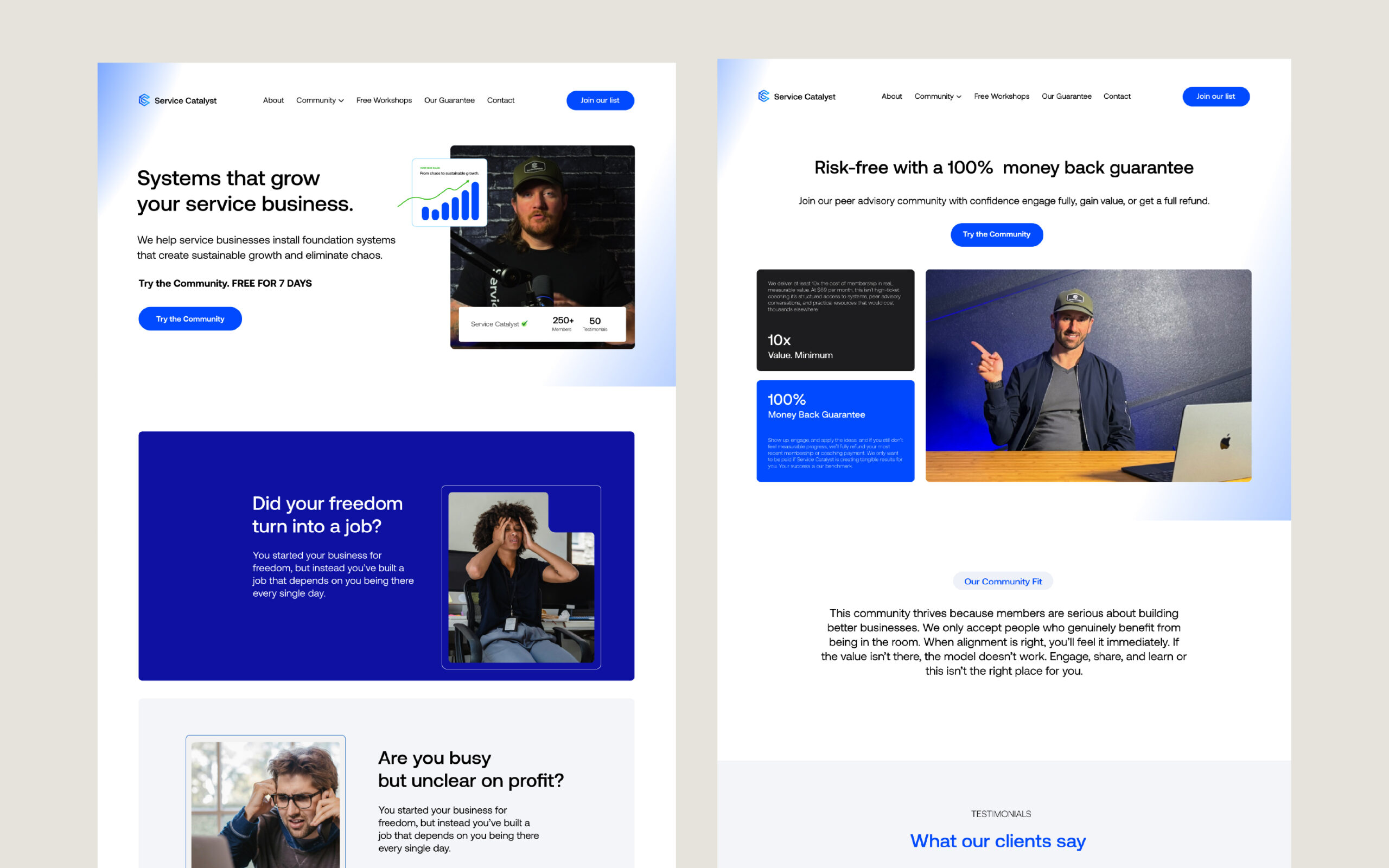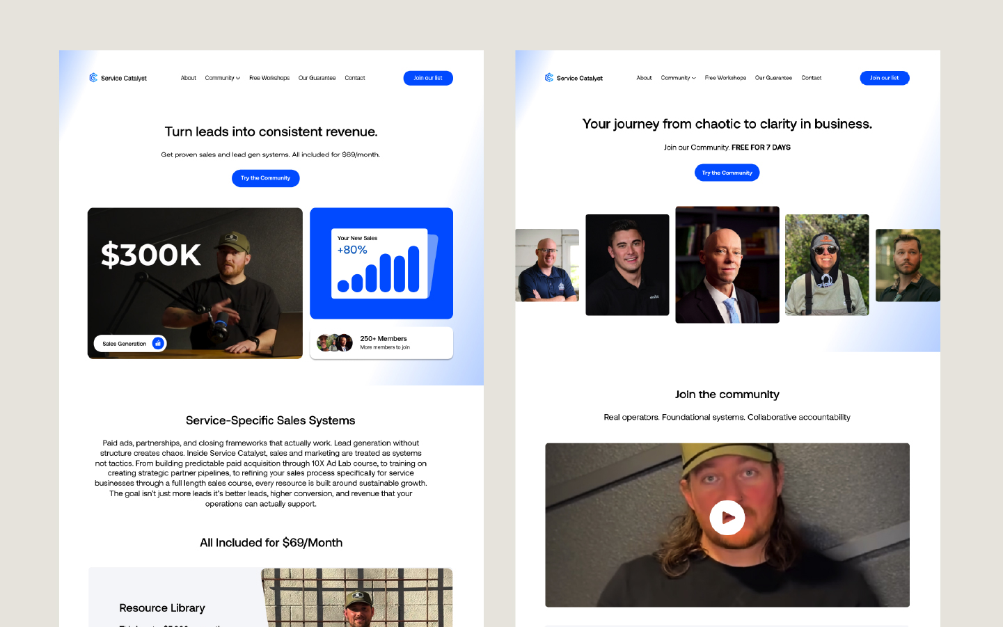 Service Catalyst needed a simple yet highly professional website for their business community and coaching program. The site had to feel custom, conversion-focused, and far from templated while seamlessly guiding potential clients toward taking action through clear, strategic calls-to-action and an intuitive user experience.